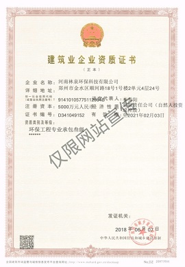 資質(zhì)證書 河南林泉環(huán)保科技有限公司是一家國家高新技術(shù)企業(yè)。公司主要從事環(huán)保工程專業(yè)承包(設(shè)計、施工、設(shè)備安裝、工藝調(diào)試)一條龍服務(wù),環(huán)境影響評價,清潔生產(chǎn)審計,環(huán)保技術(shù)服務(wù),生態(tài)文明建設(shè)指導(dǎo)及規(guī)劃等工作。